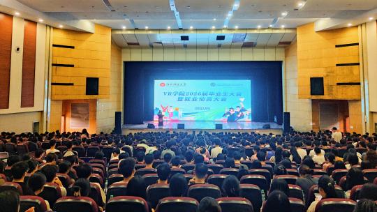 6月18日下午,我院在枫林园大礼堂召开2026届毕业生大会暨就业动员大会。校招生就业处处长郭海峰、党委书记彭敏、产业副院长汪翠芳、党委委员吴洁、2026届全体毕业班班主任、就业工作小组老师及全体毕业生共900余人参加会议,会议由学院党委副书记刘前主持。