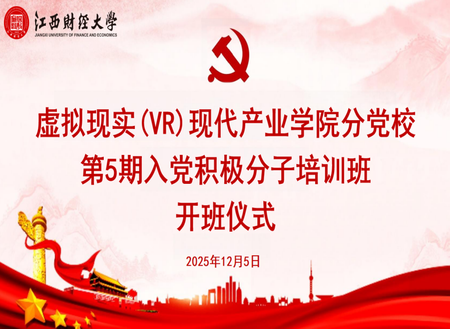 虚拟现实(VR)现代产业学院12月5日下午,我院第5期入党积极分子培训班开班仪式暨首场专题辅导报告在青云楼一楼报告厅举行。院党委书记彭敏、各学生党支部书记以及本期培训班全体学员参加开班仪式。