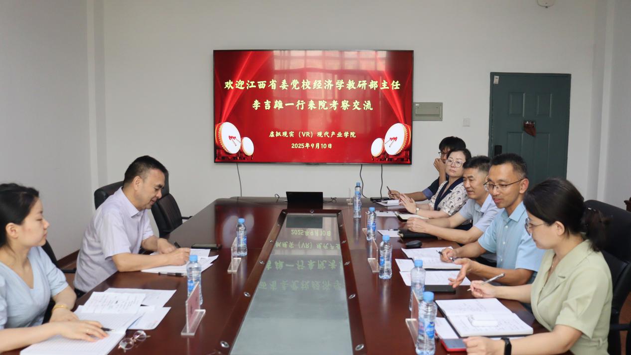 虚拟现实(VR)现代产业学院近日,中共江西省委党校(江西行政学院)经济学教研部李吉雄副主任率团队莅临我院,就现代产业学院运行机制、学院人才培养对区域产业发展的支撑作用、产业产教融合人才培养的典型做法及学院发展存在的问题等核心议题展开深度调研。我院院长万征、院党委书记彭敏、院党委委员兼教务办主任吴洁、教研室主任舒雷、产教办主任郑静、郑宇峰老师一同陪同调研。