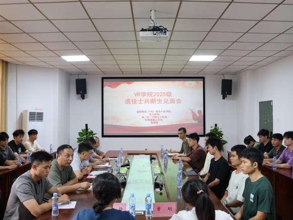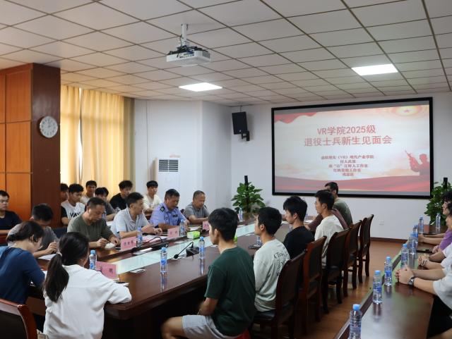 彭敏代表学院向退役后开启大学新生活的同学们表达了热烈欢迎与崇高敬意。他指出,军旅生涯是人生宝贵财富,同学们在部队锤炼的坚定信念、顽强意志和严明纪律,将为后续求学之路筑牢基础,期望大家积极融入VR学院大家庭,发挥模范带头作用传递正能量,在新征程续写精彩。