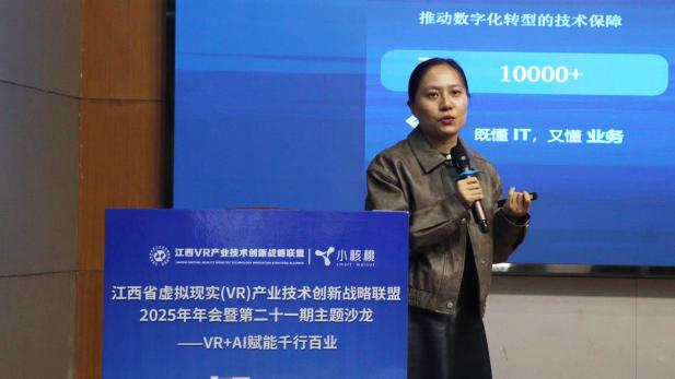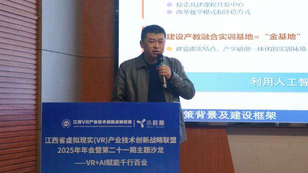论坛于下午开始,谢花林副校长首先发表致辞,深刻阐释了数智时代VR产业发展的机遇与挑战,与校企双方以论坛为纽带,深化合作、携手共赢。