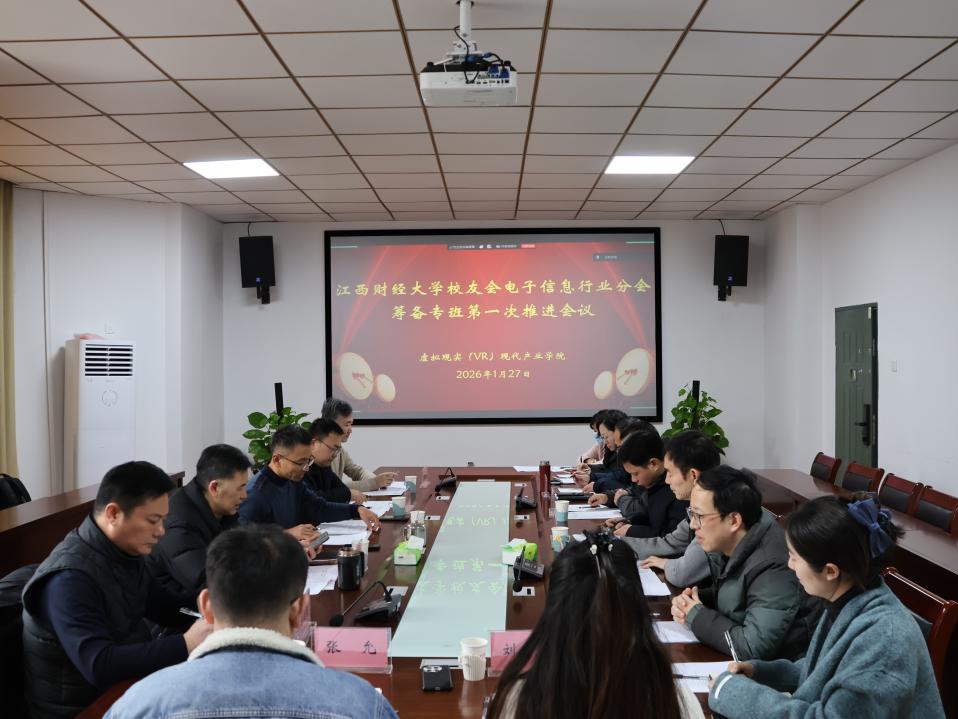 虚拟现实(VR)现代产业学院 1月27日下午,江西财经大学校友会电子信息分会成立筹备专班第一次推进会议在青云楼N303会议室成功召开。