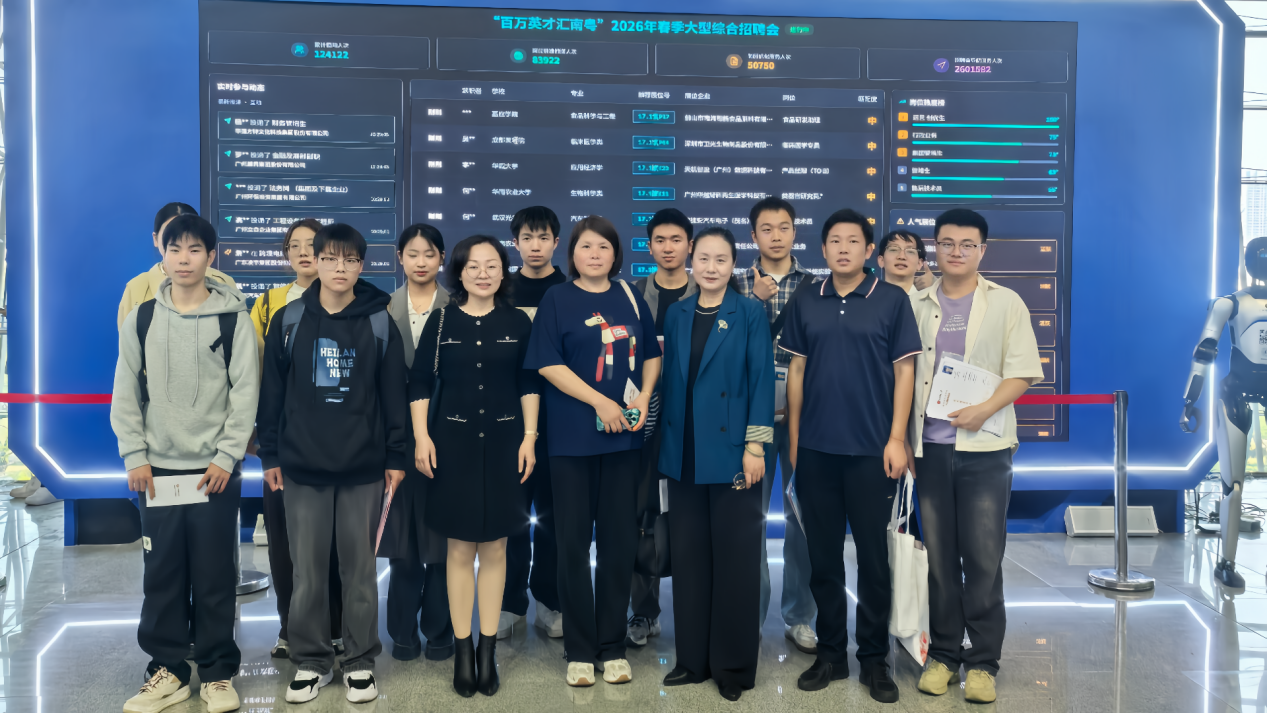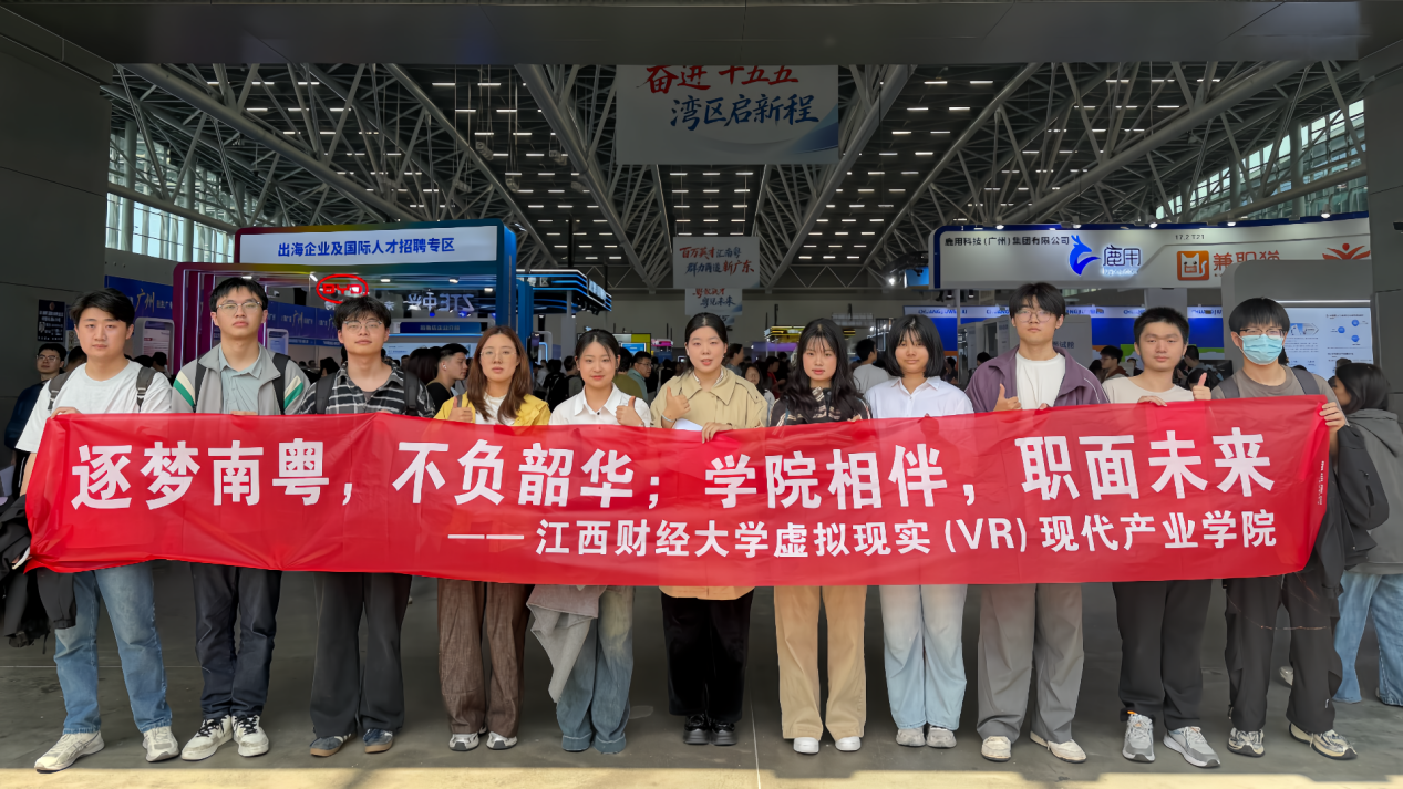 虚拟现实(VR)现代产业学院 为拓宽毕业生就业渠道,搭建校企精准对接平台,3月15日至16日,学院团委副书记郑静一行带领我院26名学生奔赴广州,参加“百万英才汇南粤”大型综合招聘会。该招聘会是广东省“十五五”开局首场省级高规格招才引智盛会,汇聚超1800家优质用人单位、提供7万余个优质岗位,两天入场求职者超15万人次。